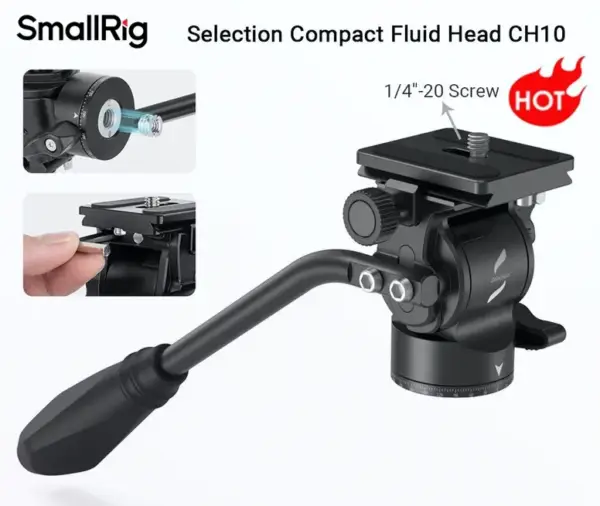В комплекте используется видеоголова SmallRig 3457 — лёгкая и плавная гидравлическая голова с удобной рукояткой. Она обеспечивает точный контроль панорамирования и наклона, что делает её идеальной для интервью, репортажей, обзоров и любой динамичной съёмки. Совместима с быстросъёмными площадками стандарта Arca.